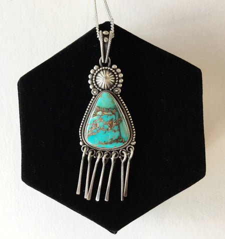 Kingman Turquoise and Silver Fringe Pendant, by Ivan Howard