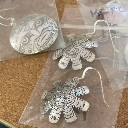 Pacific Northwest Coast Silver Earrings, by Kolten Grant