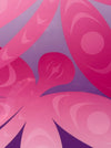 Rich color gradations of pink and purple allow for a soothing and thoughtful composition from contemporary Coast Salish artist Chris Paul.